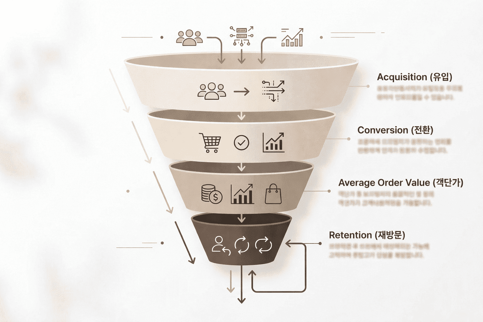유입은 충분하지만 구매 금액이 낮아 수익이 남지 않는 구조입니다.